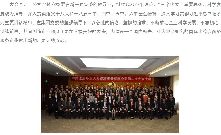 热烈庆祝中共北京外企人力资源服务有限公司第二次代表大会胜利召开