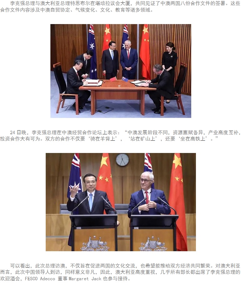 李克强总理访澳,为啥 FESCO Adecco 董事参与接待?